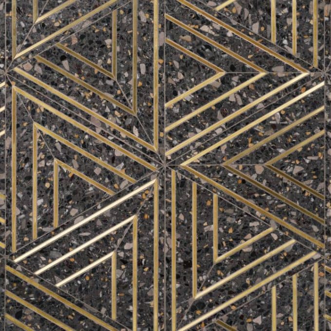 Brass and Terrazzo bring this angular pattern to life. Dimensions shown reflect image shown.
