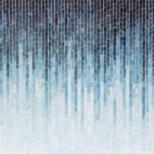 - DESCRIPTION Billie Ombré Blue Glass Mosaic: our ode to legendary jazz musician Billie Holiday, Billie Ombre traces Holiday's trademark melodic vocalizations along a wave of vibrant colored glass, creating an overall ombre effect. Choose from the original ombre in blue or grey gloss or incorporate the solid extender pieces for a variety of thematic variations. Dimensions reflect image shown.