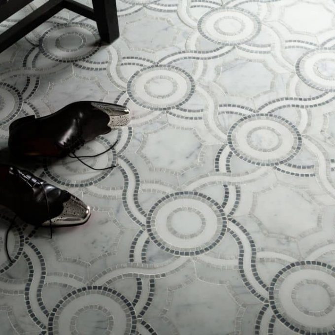- DESCRIPTION In 79 AD Mount Vesuvius suddenly erupted, covering the thriving Roman metropolis of Pompeii in a deep layer of smothering ash. The ash choked the city in a historic tragedy, preserving its people and culture with astonishing clarity. Excavations at Pompeii are ongoing, each day uncovering new evidence of the cultural richness of the Roman empire. A recently uncovered dwelling revealed an intricate ceiling, with geometrics and braids that thrilled our founder on a recent visit. She reinterpreted the pattern into stone, resulting in Pompeii, a mixed waterjet mosaic pattern hewn from classic Italian marble. Pompeiis aesthetic spans millennia - it doesnt get more classic than this. Dimensions reflect image shown.