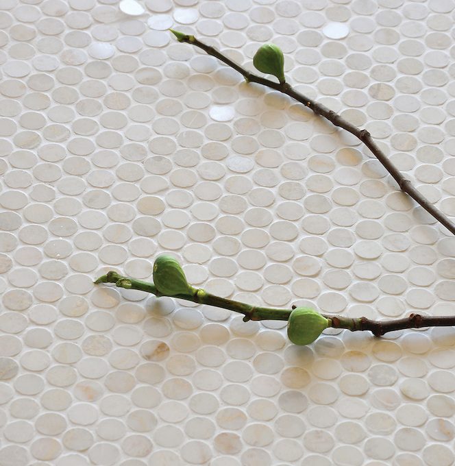 Elegant 2cm Penny Rounds in polished Cloud Nine stone.