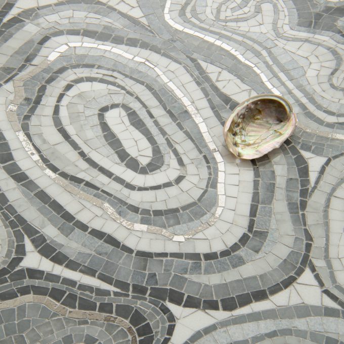 - DESCRIPTION Geode, a hand-cut stone mosaic shown in honed Thassos, polished Dolomite, Afyon White, Carrara, Allure, Celeste, Bardiglio, and Mercury, is part of the Biome collection by New Ravenna.