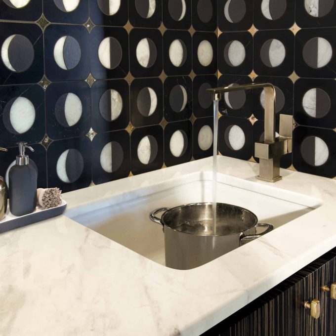 - DESCRIPTION Phase to Phase, a waterjet mosaic shown in honed Nero Marquina, matte Dahlia, polished Aurum, and White Onyx, is part of Cean Irminger’s third Kiddo collection, Kiddo: Heyday™ available at Decorative Materials.