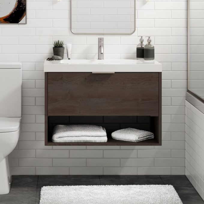 DESCRIPTION The Guilder 3 - G3 vanity is part of the quick ship vanity program that allows you to purchase ready made, top quality, high-end bathroom vanities and have them shipped to you at an expedited rate. The Guilder 3 vanity comes in five different sizes and five finishes and includes a split drawer and an open shelf. Pictured in three different configurations.