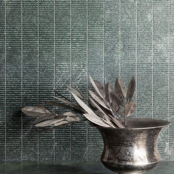 - DESCRIPTION Rope-like strands of textured dimensional stone are framed with clean metallic lines in Corda, stocked in three distinct colorways. Metallic silver lines are inset into Corda Verde Reale serpentine marble and Smoke limestone, while Corda Bianco Carrara features bronze lines inset into classic white Italian marble.