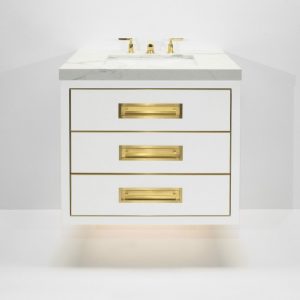 - DESCRIPTION Lylah - 106 is a new design created to be a jumping off point for using our many vanity options. This design can be wall mounted or set up as a freestanding design by adding one of our base options. Pictured in three different configurations. A wide variety of Lylah configurations are available to meet your exact needs.