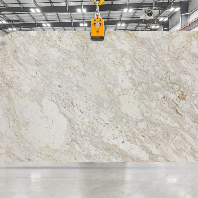 - DESCRIPTION A milky-white Greek marble with a rich network of veins that range from icy, silvered taupe to latte beige, to rich caramel. Available in 24" × 24" honed field tile and 2cm honed slabs.