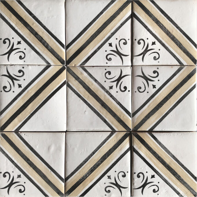 - DESCRIPTION Palio 13, a hand painted terracotta field, has some slight color variations and small imperfections that make this product one of a kind. Shown in latte and charcoal on off white.