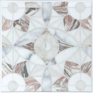 Pink Moroccan Heart is shown in Thassos (H), Bianco Dolomite (H), Calcatta Gold (H), Calacatta Luna (H) & Rosa Norwegian (H).