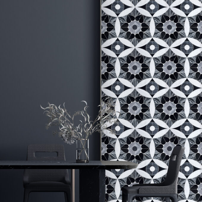 DESCRIPTION Black Moroccan Heart is from Allison Eden's latest mosaic collection. Famous for her unique glass mosaics, Eden brings her most popular patterns to a new medium with the Stone Collection. Premium marble, limestone and travertine work together to create harmonious compositions. Choose from one of eight distinctive, made-to-order color blends or come up with your own Moroccan Heart color story. With customization options, you can select from a wide range of stones and finishes.
