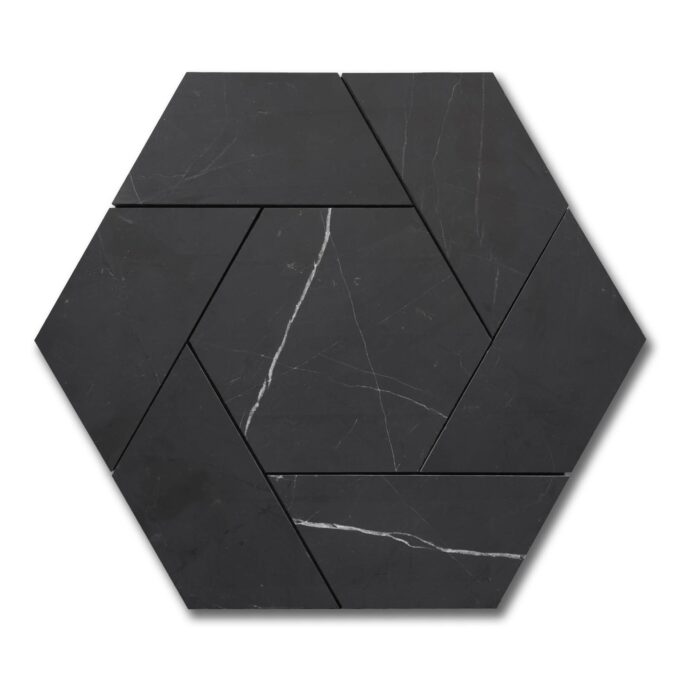 - DESCRIPTION Eternal. Elegant. Elevated. The Infinity Collection combines traditional roots with modern geometry. Infinity Convex Tulip Black features black marble stone with delicate, intermittent strokes of white veins. The stunning hexagon mosaic tile is in a honed finish making it smooth to the touch, perfect for floor applications.