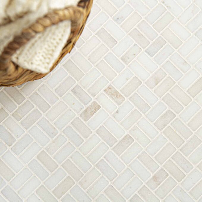 - DESCRIPTION Double Brick, a hand-cut mosaic shown in tumbled Calacatta Monet, is part of The Studio Line of ready-to-ship mosaics by New Ravenna for Decorative Materials.