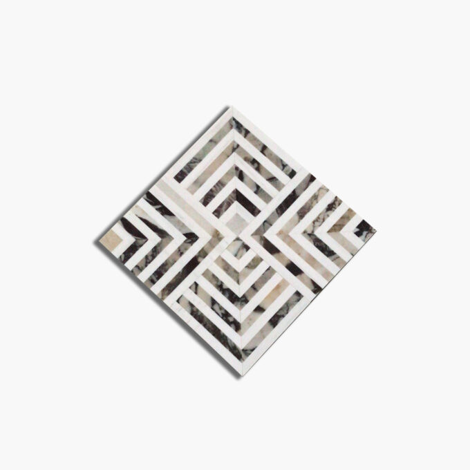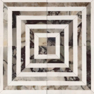- DESCRIPTION The Calacatta Viola Illusion Mosaic is a stunning and versatile purple and white mosaic. This mosaic adds a unique look to any space. The finish of the tiles can be either polished or honed, depending on the desired look. Calacatta Viola tiles are often used in bathroom and kitchen designs to create an elegant and timeless look. Pairs perfectly with coordinating Calacatta Viola tiles, available in 4" × 12", 12" × 24", 2" × 4" herringbone mosaic, 3" hexagon mosaic, chevron mosaic, and penny round mosaic.