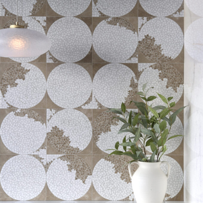 DESCRIPTION La Lune B from the Jardin Éternel Collection. Step into the timeless beauty of nature. A garden does not stand still—it grows, deepens, and flourishes. Jardin Éternel is the second chapter in our journey through the effortless beauty of nature’s timeless rhythms. This collection is a natural evolution of our ever-growing savoir-faire. Rooted in the tradition of mosaic artistry, La Lune B leans further into organic textures, handcrafted details, and the enduring elegance of stone.