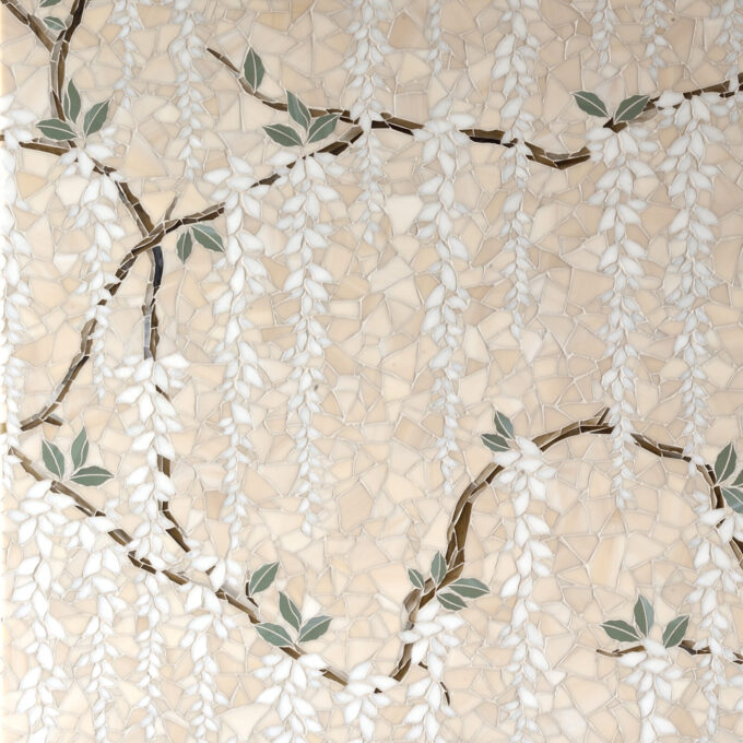 - DESCRIPTION Wisteria Bloom 2 tile from the Jardin Éternel Collection. Step into the timeless beauty of nature. A garden does not stand still—it grows, deepens, and flourishes. Jardin Éternel is the second chapter in our journey through the effortless beauty of nature’s timeless rhythms. This collection is a natural evolution of our ever-growing savoir-faire. Rooted in the tradition of mosaic artistry, Wisteria Bloom 2 leans further into organic textures, handcrafted details, and the enduring elegance of stone.
