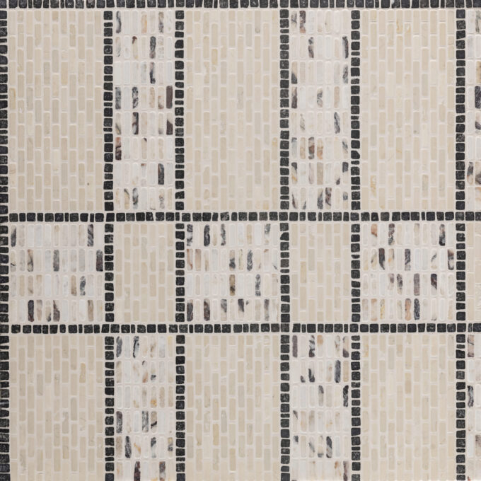 - DESCRIPTION Windowpane Plaid Viola Mosaic is from a collection inspired by the timeless appeal of stripes and plaids. The Handloom Collection offers three distinct patterns for countless design possibilities. Windowpane Plaid presents an elegant checkerboard of varied rectangles. This reinterpretation of a classic pattern is available in Pink, Moca, and Viola colorways, combining soft, luxurious stones like Rosa Perlino, Calacatta Gold, Bianco Antico, Belgian Blue, and Viola, in serene, understated palettes.