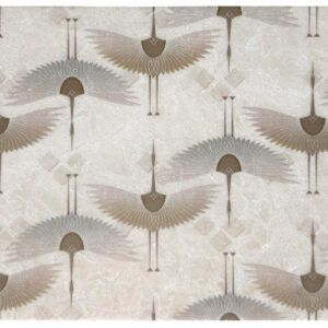 - DESCRIPTION The Bakasana Birds pattern by StoneImpressions, features elegant cranes in mid-flight against a richly textured backdrop. Inspired by traditional Japanese motifs, this contemporary design combines the grace of these revered birds with a striking palette, available in four dazzling colorways: Forest, Twilight, Grey, and Sweet Almond. With a subtle nod to Art Deco influence, Bakasana Birds seamlessly blends sophistication and artistic flair, making it the perfect choice to elevate any space in your home.
