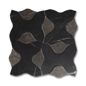 DESCRIPTION Dyad Pavo Tulip Black + Dark Olive draws inspiration from timeless geometry, transforming traditional Eastern motifs into a modern expression of elegance. Crafted in marble mosaic form, this design balances depth and harmony, blending structure with softness. Subtle tonal contrasts between brushed Tulip Black and honed Dark Olive create a serene rhythm across each surface.