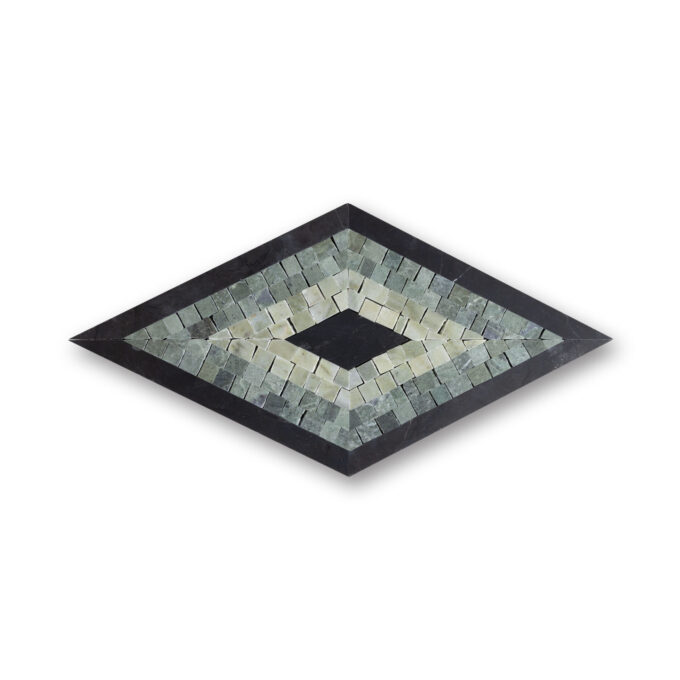 - DESCRIPTION Awaken form and artistry with Musea Diamond Moss Green with Verde Laguna & Tulip Black. Hand-chopped fragments create circular and diamond mosaic profiles, each surface honed to reveal rich tonal depth and quiet dimension. The result feels both storied and new—a tribute to grand museum floors, reimagined as a versatile statement for modern spaces.