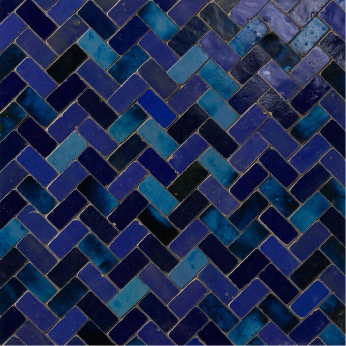 - DESCRIPTION We carefully distress the Antique Zellige Medina Mer Blend mosaic to create a rich, timeworn patina. Its finish reflects centuries of history and captures the charm of ancient Moroccan architecture. Our artisans hand-cut and glaze each tile using traditional Moroccan techniques. From the Antique Zellige Collection.