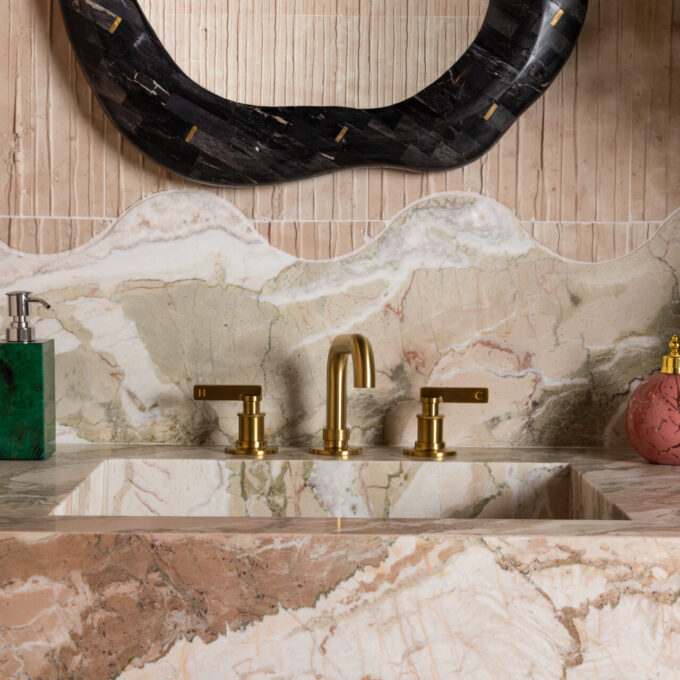 - DESCRIPTION Warm and rustic, Undercoat Rosa Perlino Marble Decorative Tile features carved organic striations in different lengths and widths. Recalling hand-applied plaster or palette-knife painting, Undercoat revels in its variation. Offered in three honed colorways — Bianco Antico Marble, Rosa Perlino Marble, and Belgian Bluestone. Each piece is unique and may include open veins. Available in a 12” x 24” x 7/16” dimensional tile.