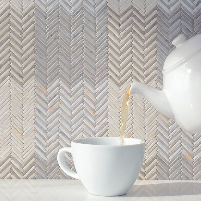 - DESCRIPTION Gingham Chevron, a hand-cut mosaic shown in tumbled Cashmere, Palomar, Bianco Antico, and Cloud Nine, is part of the Tisse Collection. Dimensions reflect image shown.