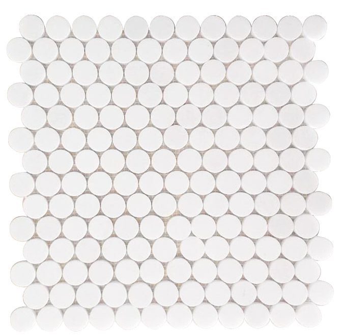 - DESCRIPTION White Thassos is a white marble, shown here in the 1" circle mosaic. Additional mosaic and field sizes are available.