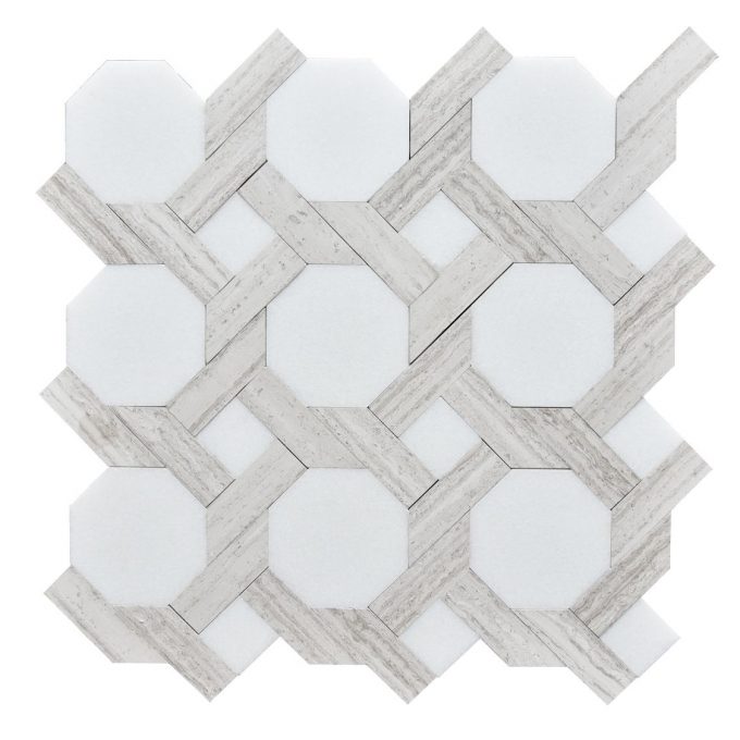 - DESCRIPTION The Lavita mosaic shown here in White Thassos and White Stratta is a contemporary take on a more traditional pattern. Available in a variety of additional stones.