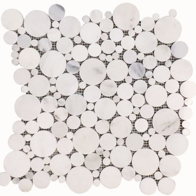 - DESCRIPTION The Bubbles mosaic is shown here in a blend of White Statuary Calacatta Polished. It's sure to add a pop of fun to any space.