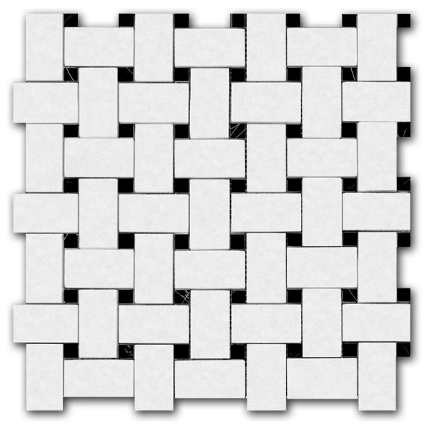 Thassos Select Basketweave Mosaic w/Nero Dot Polished
