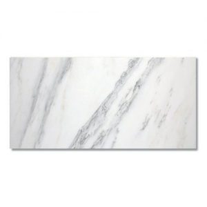 DESCRIPTION Carrara Bella marble tiles boast soft gray and gold movement that streams across a crisp white surface. The polished version lends an elegance to spaces and a clean, dreamy effect wherever it's used. Available in the following field sizes: 3x6, 3x9, 4x12, 12x12, 18x36 as well as a variety of mosaics and trims.