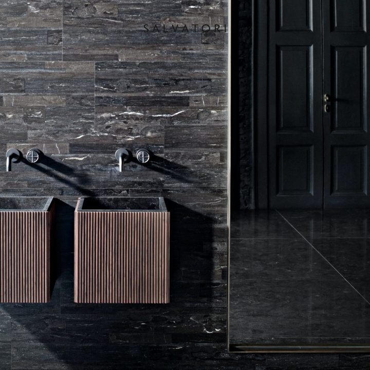 With a nod to the décor of the 1950s and 60s, Adda represents a retro-contemporary collection that plays with the inherent properties of different materials in the coolness of natural stone, the warmth of wood and the muted elegance of burnished brass. An extraordinarily versatile collection, it includes modular components which can be combined in an almost infinite number of configurations to create the look, style and dimensions you want. Choose from a height of 20 or 40 cm, a length of 60 or 90 cm, with or without a drawer. The stone basin comes in both a countertop and integrated variant with facings in wood or brass. Available in Bianco Carrara, Crema d’Orcia, Grigio Versilia, Gris du Marais®, Pietra d’Avola and Silk Georgette® with facings in smooth and ribbed walnut, smooth maple and thermo-treated oak and burnished brass.