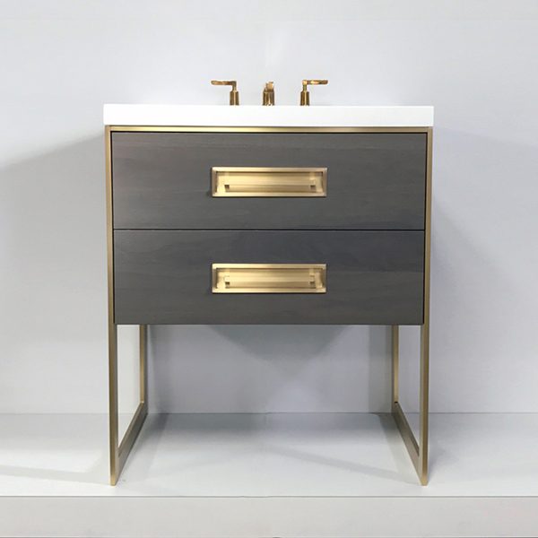 Alton – 615, one of our fully customizable vanity designs, combines the style of our new metal series with the storage of our popular Avalon design. Alton features 1/2″ x 2″ metal details and incorporates full use of both drawers. Recessed bar pull shown is not included and must be ordered separately.