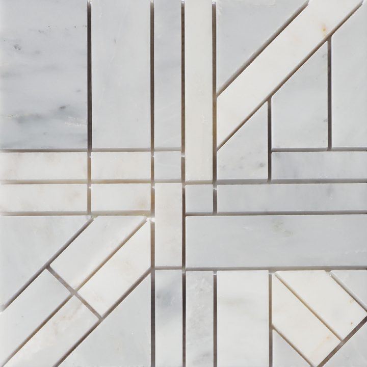 Personalize any area with this white marble mosaic that offers the perfect balance of neutral shading and striking design.