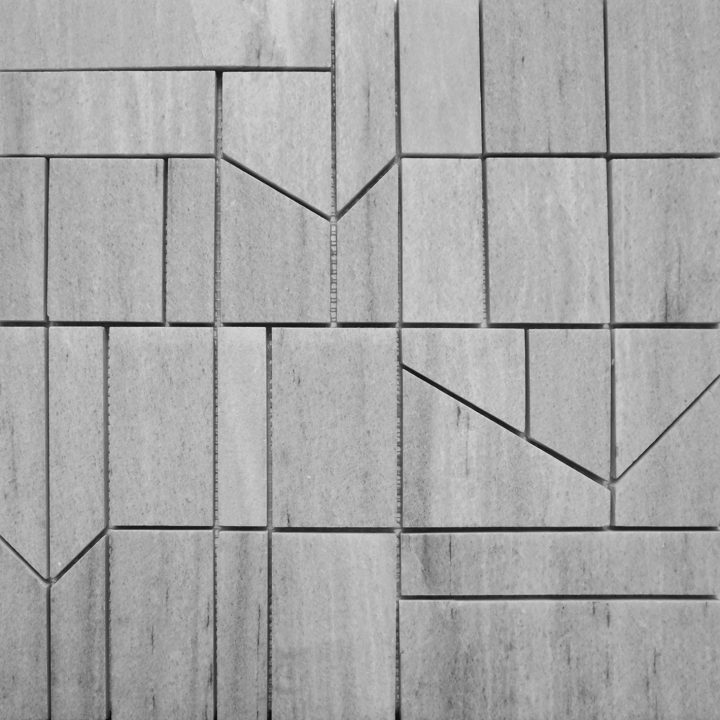 To create a balanced and transitional look, try this Ash Gray marble mosaic. The concise geometric pattern perfectly complements the delicate linear movement of the stone.