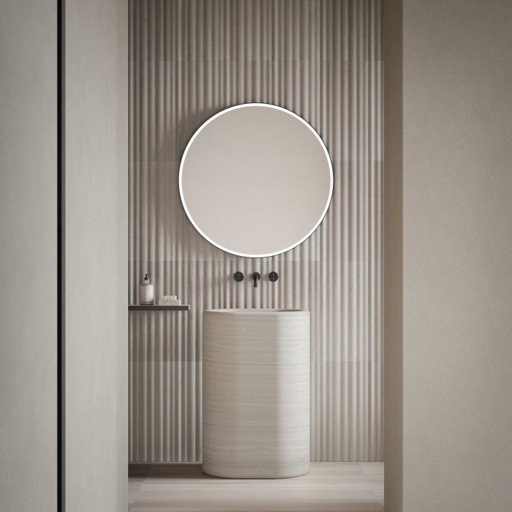 A solid column of natural stone, with the top area carved out to create the soft curve of a basin, this is a truly sculptural piece which brings elegance and sophistication to the bathroom. Available in Bianco Carrara, Crema d’Orcia, Gris du Marais® and Pietra d’Avola, it bears the inimitable touch of its designer Elisa Ossino who created the entire Balnea collection around the sculptural quality of natural stone.