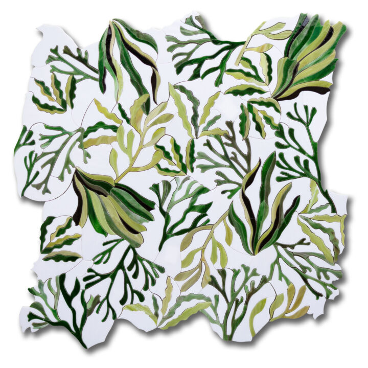 Escape to the beauty of an underwater oasis with Botanicus Reef Emerald by Allison Eden. Drawing inspiration from the sea, this glass mosaic is destined to create an eye-catching mural on any interior wall.