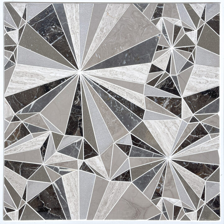 Brown Diamond Starburst is from Allison Eden’s latest mosaic collection. Famous for her unique glass mosaics, Eden brings her most popular patterns to a new medium with the Stone Collection. Premium marble, limestone and travertine work together to create harmonious compositions. Choose from one of eight distinctive, made-to-order color blends or come up with your own Overlapping Circles color story. With customization options, you can select from a wide range of stones and finishes.