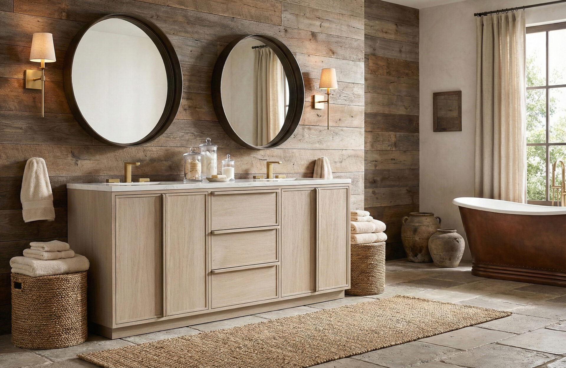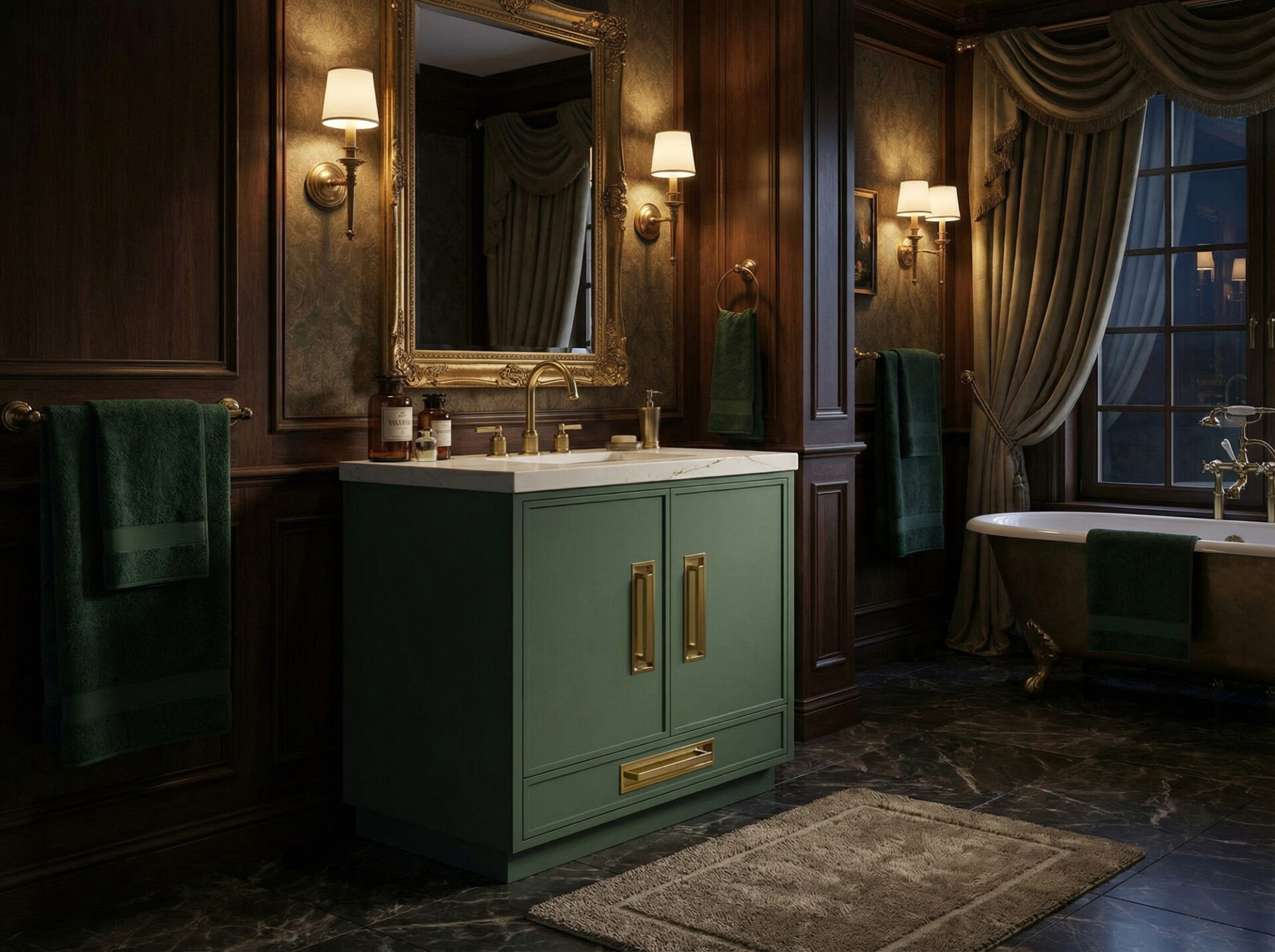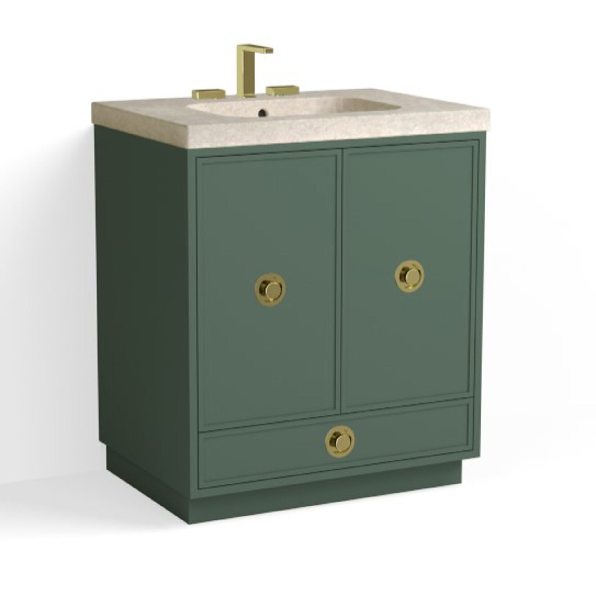 The Calder – 108 is one of the vanity designs available through Decorative Materials. It features a modern, thin-framed cabinet construction with a refined slim Shaker-style door and drawer design. Built for both style and functionality, Calder offers maximum storage with various configurations in sizes from 24″ – 72″ as standard. A 3″ integrated toekick provides a clean, grounded look while maintaining easy access. This design blends classic craftsmanship with contemporary simplicity—ideal for transitional and modern interiors alike.