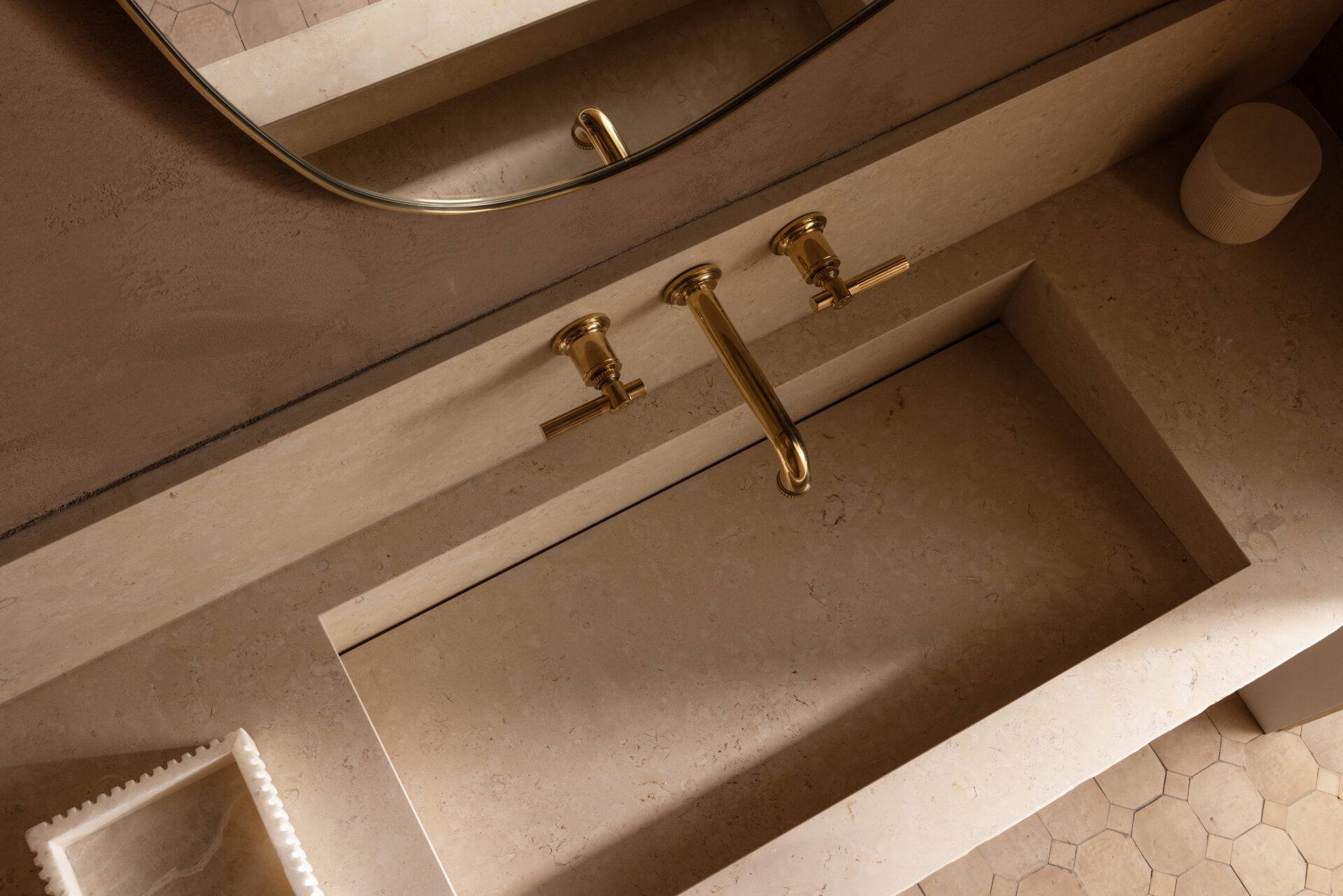 Crema Luna Limestone Slab features classic French limestone with rich fossilization and soft pink-beige tones. Honed to a beautiful matte finish, this stone brings timeless elegance to both residential and commercial spaces. Its natural variation and subtle warmth create an inviting, enduring backdrop for a wide range of interior styles.