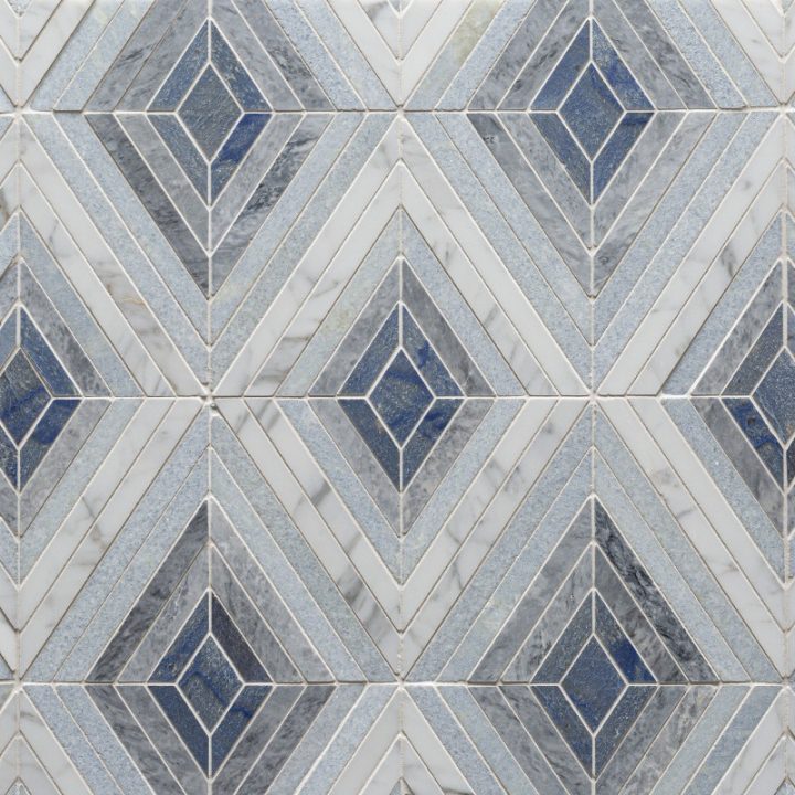 Echo Grand interprets the dramatic diamond ombré-like pattern of our Echo glass pattern in three luxurious marble colorways. The cascading succession on all three blends produces a complex ripple effect, showcasing an assortment of remarkable color tones. Stocked in Blue, Green, and Grey.