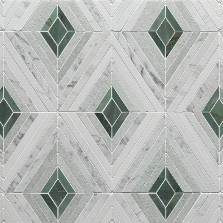 Echo Grand interprets the dramatic diamond ombré-like pattern of our Echo glass pattern in three luxurious marble colorways. The cascading succession on all three blends produces a complex ripple effect, showcasing an assortment of remarkable color tones. Stocked in Blue, Green, and Grey.