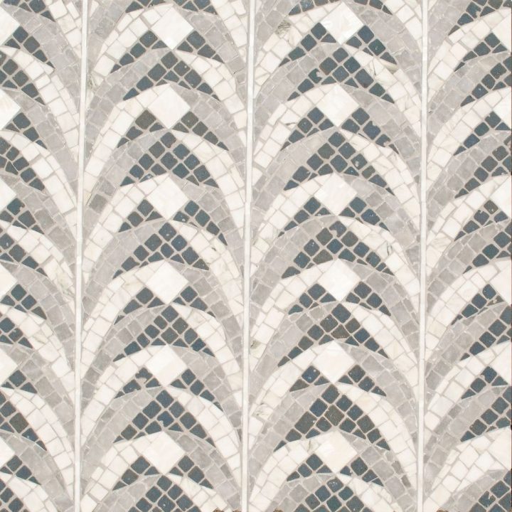 Eliot, a waterjet mosaic shown in tumbled Orchid Basalto, Allure, Cirrus, and Shell, is part of the Bright Young Thing Collection. Dimensions reflect image shown.