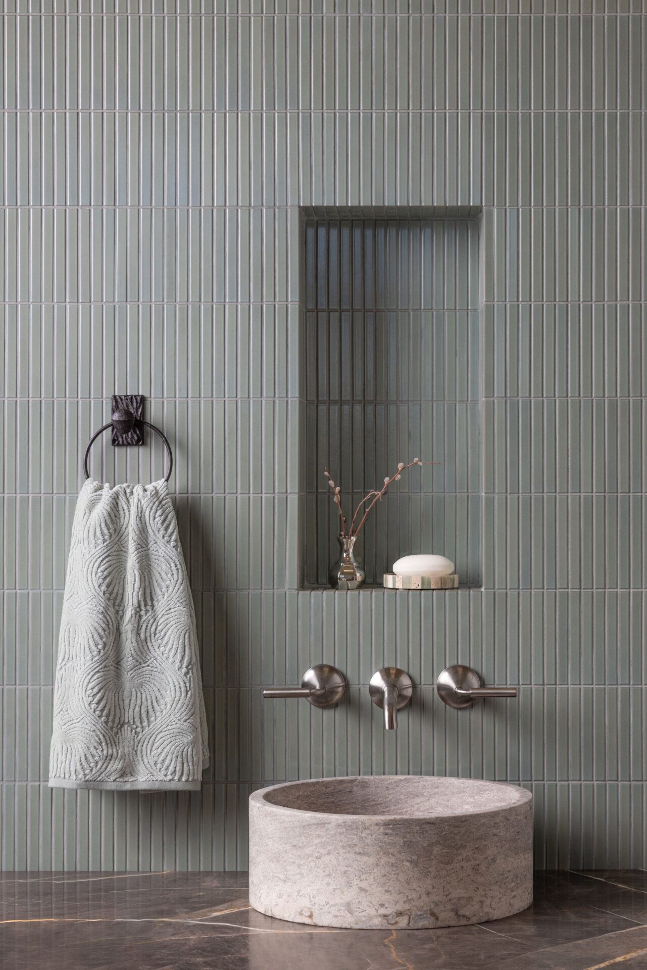 Elyra Celestial Jade is a linear porcelain mosaic that brings calm, architectural rhythm to modern interiors. Elongated forms and a refined palette evoke horizon-like movement while adding subtle texture and tonal depth. Durable porcelain construction makes Elyra ideal for walls, showers, backsplashes, and statement installations.