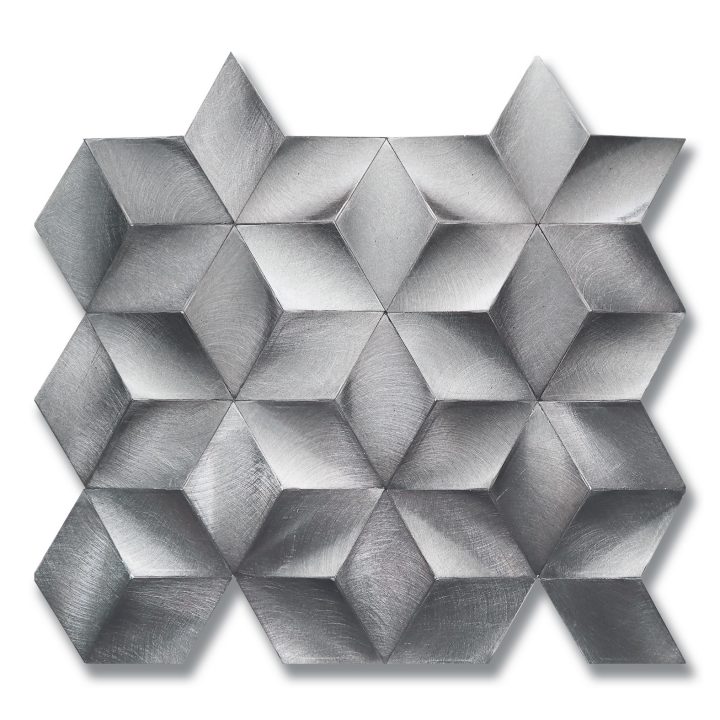 Noble. Fierce. Spirited. Pay homage to legendary design. Incorporate a geometric three-dimensional metallic mosaic tile into any space to add a “wow factor” that seamlessly catches light to create a shimmering presence.