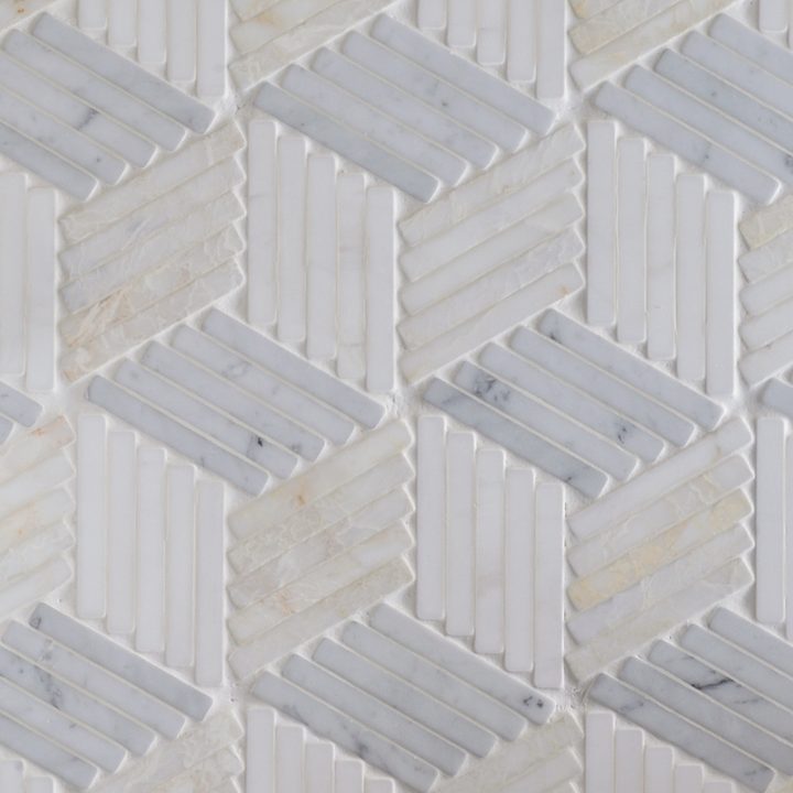 Falling Stars Illusion Grande is made up of Arctic White (Tumbled), Chantilly White (Tumbled) and Bianco Carrara (Tumbled).