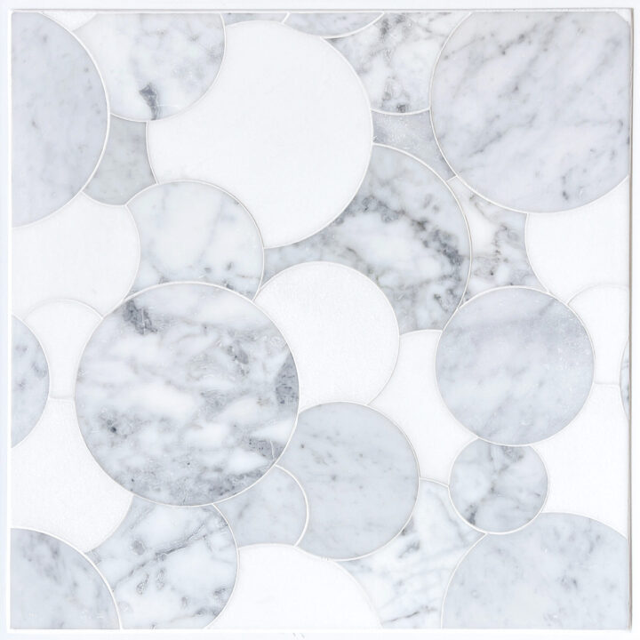 Grey Overlapping Circles is from Allison Eden’s latest mosaic collection. Famous for her unique glass mosaics, Eden brings her most popular patterns to a new medium with the Stone Collection. Premium marble, limestone and travertine work together to create harmonious compositions. Choose from one of eight distinctive, made-to-order color blends or come up with your own Overlapping Circles color story. With customization options, you can select from a wide range of stones and finishes.