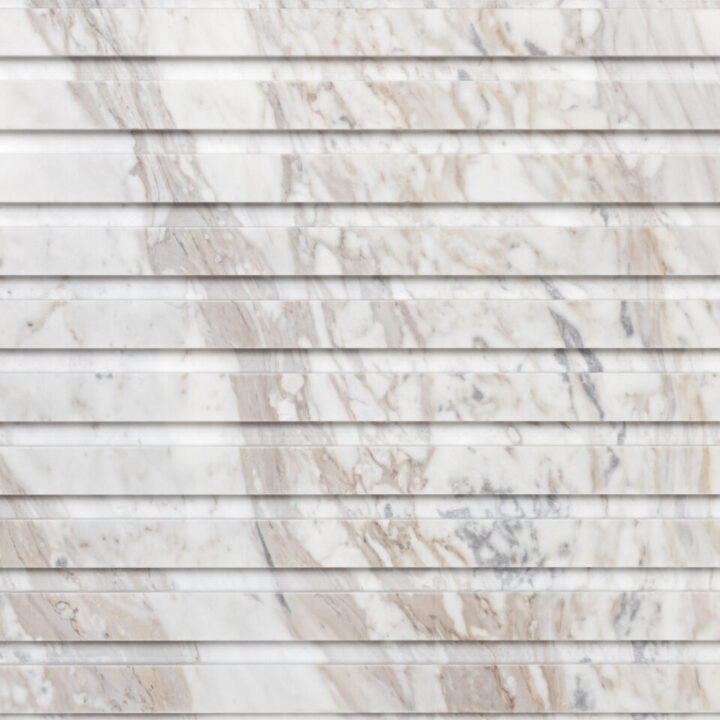 Groove Arabescato D’oro is a dimensional tile with modern presence. A repeating channel is carved the length of each 12″ x 24″ tile, creating an intriguing interplay with the natural veining. There are four stones offered in Groove: Lilac, Nero Dorato, Vanilla Onyx, and Arabescato D’Oro. Each version of Groove is honed, and ideal for full-wall installations or as a sophisticated and sculptural wainscoting.