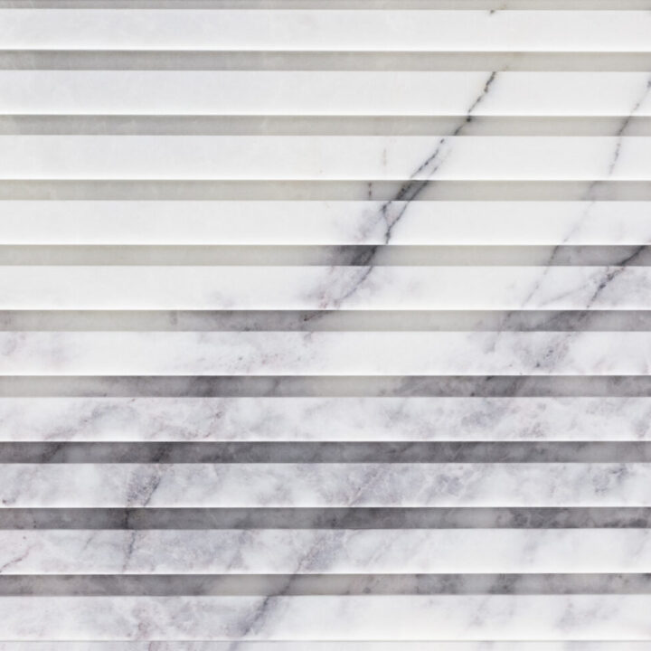 Groove Lilac is a dimensional tile with modern presence. A repeating channel is carved the length of each 12″ x 24″ tile, creating an intriguing interplay with the natural veining. There are four stones offered in Groove: Lilac, Nero Dorato, Vanilla Onyx, and Arabescato D’Oro. Each version of Groove is honed, and ideal for full-wall installations or as a sophisticated and sculptural wainscoting.
