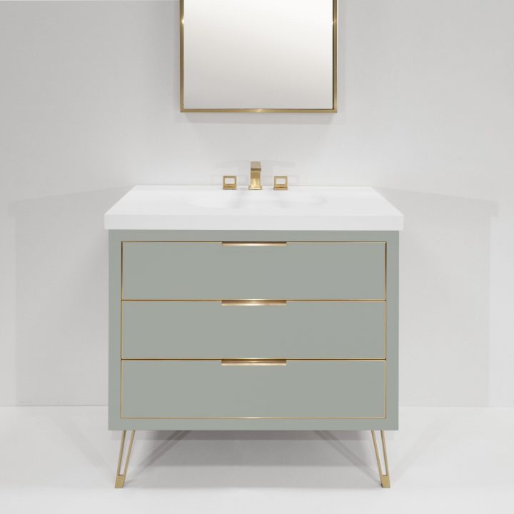 Josie is our version of Midcentury Modern and is available in sizes from 24″-72″ with multiple configurations available in each size. Josie has solid brass legs made by hand individually. Details include solid brass trim around each of the 3 working drawers and matching interior finish.