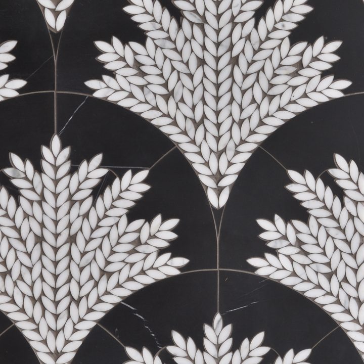 Laurel 2 is made up of Nero Panthera (Honed) and Statuario (Polished).- NOTES